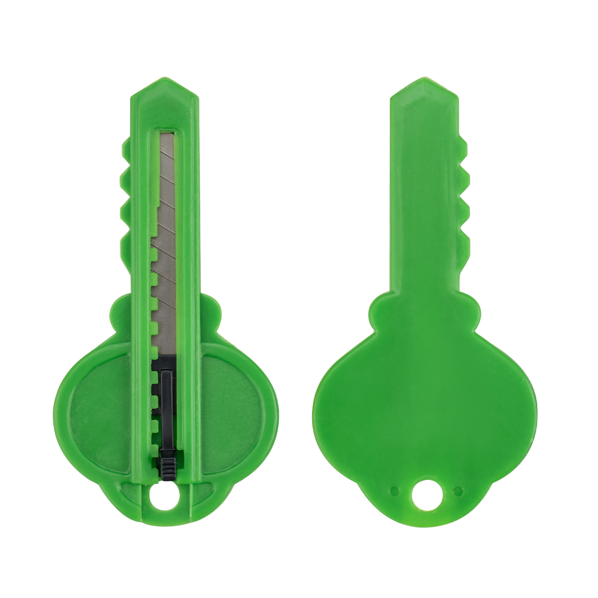 这款工具刀外观别具一格,颜色可随客订,形似钥匙,造型小巧精致。刀身顶部有挂孔设计,便于悬挂收纳,不占空间。刀片部分可伸缩,隐藏在外壳内,不使用时可完全收回,保障安全。使用时不会晃动,切割精准。日常拆快递时,它是理想工具,能快速划开包装;办公场景下,可用于裁剪纸张、文件等;在手工制作中,切割薄卡纸、塑料薄片等材料也不在话下,是一款兼具美观与实用的工具刀。